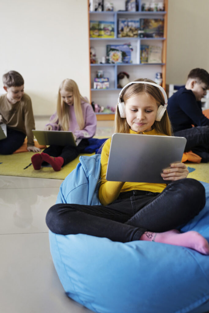 ScratchJr i Scratch to narzędzia do nauki programowania stworzone specjalnie dla dzieci. Młodsze dzieci uczą się podstaw kodowania przez zabawę z kolorowymi bloczkami w ScratchJr, tworząc proste animacje i historyjki. Starsze rozwijają swoje umiejętności w Scratchu, projektując gry i interaktywne sceny. To nauka przez zabawę, która rozwija logiczne myślenie, kreatywność i cyfrowe kompetencje.